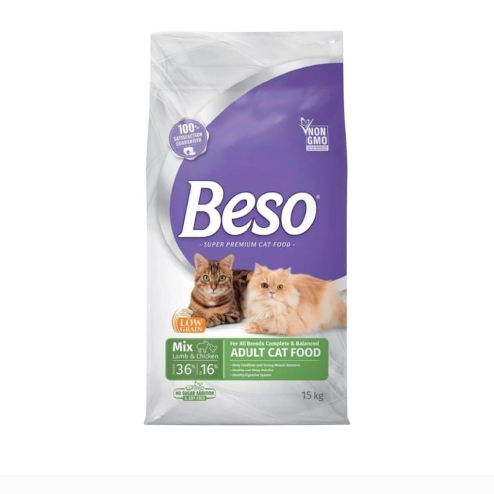 طعام جاف للقطط من بيسو بتركيبة متوازنة تجمع بين الدجاج ولحم الضأن لتوفير بروتين عالي الجودة يدعم العضلات والطاقة اليومية. يساعد على الشبع المنتظم، والهضم السلس، ليكون جزءًا ثابتًا من روتين التغذية اليومي للقطط البالغة.