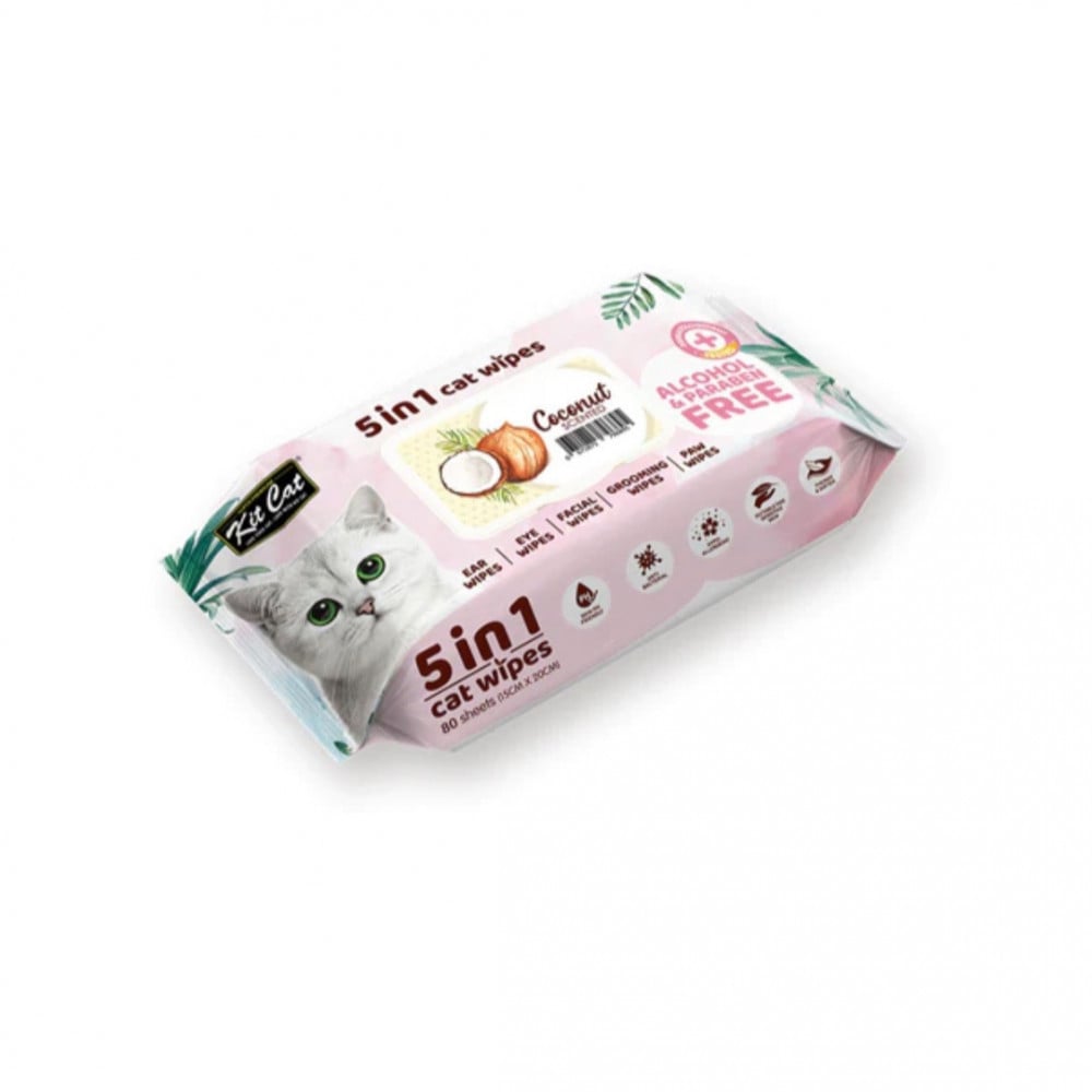 مناديل كت كات 5 في 1 خالية 100% من الكحول والبارابين مما يجعلها امنة على جسم قطتك وامنة على المناطق الحساسة مثل الوجه وباطن الاقدام